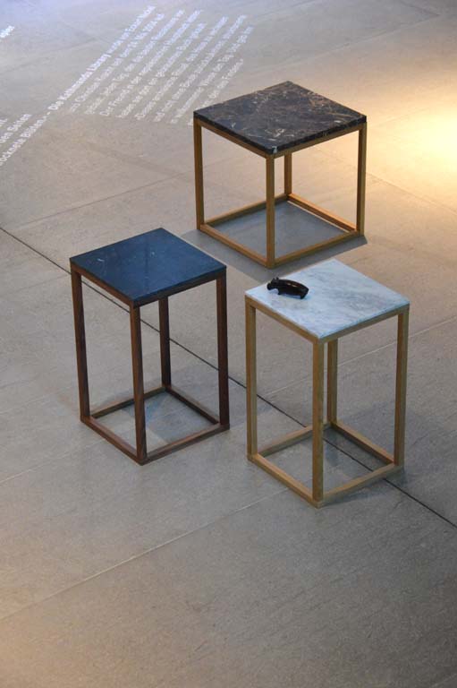 Eine Erweiterung der gelungenen PINO Serie ist diese Variante mit einem Gestell aus massivem Eichenholz oder Nussbaumholz wahlweise mit 4 Platten aus Marmor - Carrara, Marquina, Emperador, Guatemala. Der geschlossene Tisch dient im Aussen- und Innenbereich als Abstellplatz oder kleiner Beistelltisch neben die Couch oder Sessel.